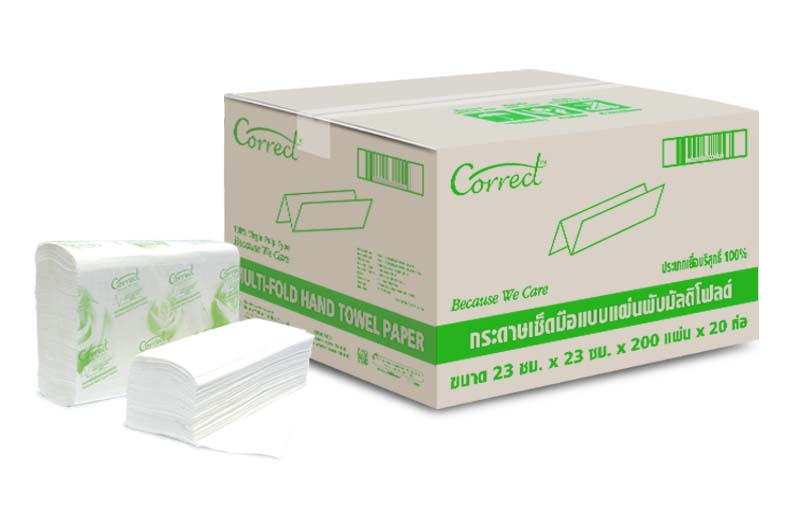 กระดาษเช็ดมือแบบแผ่นพับต่อเนื่อง ชนิด 1 ชั้น ขนาด 20 ซม. x 23 ซม. (ขนาดบรรจุ 250 แผ่น x 24 ห่อ (6,000 แผ่น)/หีบ)