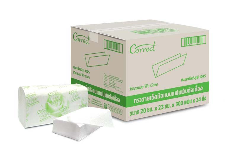 กระดาษเช็ดมือแบบแผ่นพับต่อเนื่อง ชนิด 1 ชั้น ขนาด 20 ซม. x 24 ซม. (ขนาดบรรจุ 250 แผ่น x 24 ห่อ (6,000 แผ่น)/หีบ)