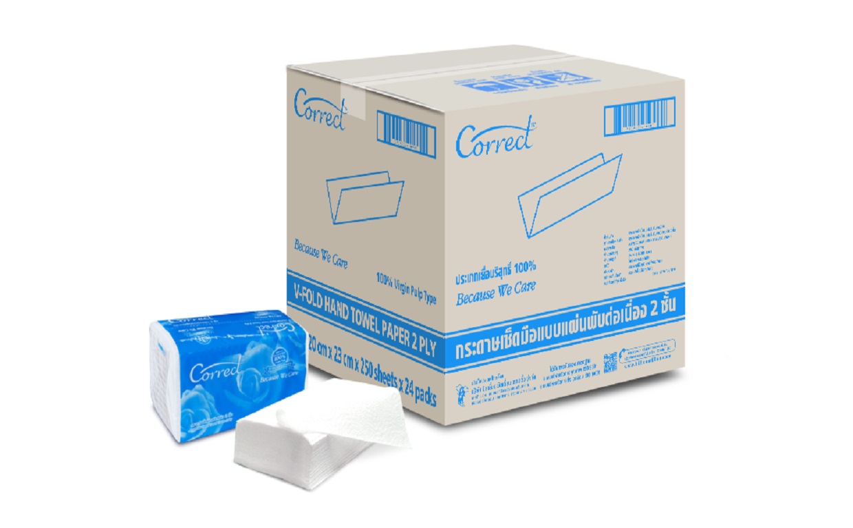 กระดาษเช็ดมือแบบแผ่นพับต่อเนื่อง ชนิด 2 ชั้น ขนาด 20 ซม. x 24 ซม. (ขนาดบรรจุ 250 แผ่น x 24 ห่อ (6,000 แผ่น)/หีบ)