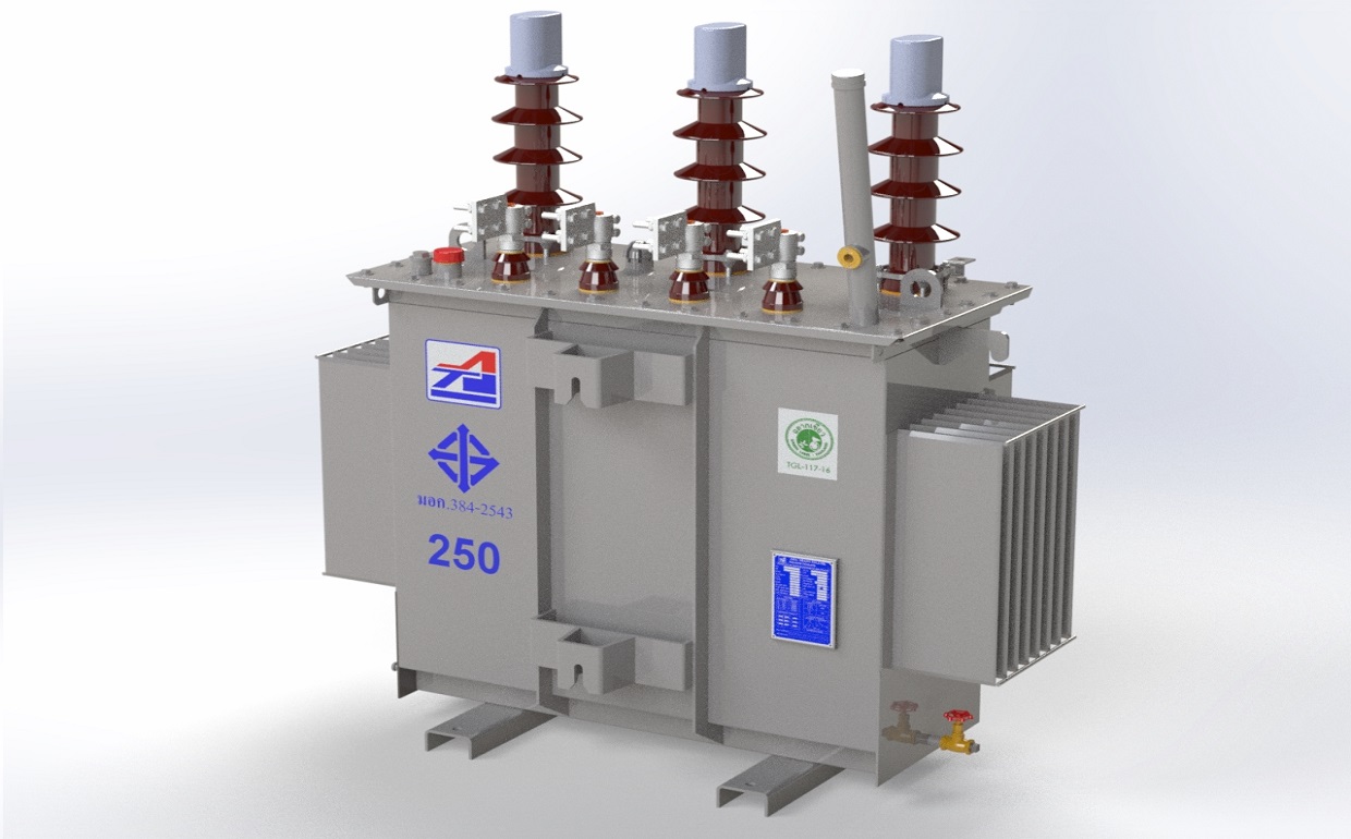 หม้อแปลงไฟฟ้า กำลังไฟฟ้า 250 kVA 3 เฟส ความถี่ 50Hz แรงดันไฟฟ้าของระบบ 33 kV